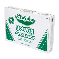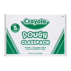 Crayola Dough lets children shape and mold their creativity! The non-crumbling, blendable, and reusable soft dough allows children to explore art in a hands-on way, without the mess! The dough comes in convenient plastic containers with airtight lids. Children can simply open, take out non-greasy dough, shape the materials as they please, and let their creations air-dry naturally—so there's no need for firing or a kiln. Child-friendly dough can be used for free-form recreation or even as a creative model material for classes. This classpack includes 24 tubs of dough (3 ounces each), 3 each in the following colors: red, orange, yellow, green, sky blue, violet, brown, and white.Features