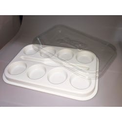 This Sax Empty Palette is ideal for class or home use. Will fit tempera cakes that measure 2-1/4 x 11/16 inches (not included). Palettes are made of durable styrene plastic that won't crack. Heavy-duty, clear plastic lid doubles as a color mixing palette.Features