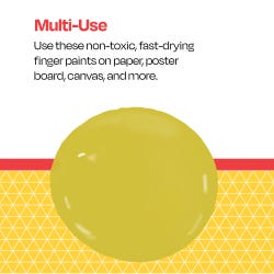 School Smart washable finger paint lets young children’s imaginations soar. This yellow washable finger paint comes in an economical 1 pint bottle. This paint can be used for painting indoors or outdoors and arts and crafts projects at schools, childcare centers, or homes. Children can explore the tactile world through hand and finger painting for beginners. Little hands have fun, while clean up afterward is a breeze for teachers and parents. The vibrant, fast drying paint for kids has a smooth texture. This non-toxic finger paint washes out of most clothing with soap and cold water.Features