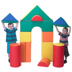 Help your little architects build something big with this 14 piece, 12 inch Module Blocks Set. These oversized building blocks inspire children to construct things cooperatively and bring their imaginative designs to a sizable scale. Perfect for preschool age building projects, these lightweight easy-to-carry pieces are also easy to clean. Ages 18 months and up. Please Note: Grayed out items in image are not included in this setFeatures