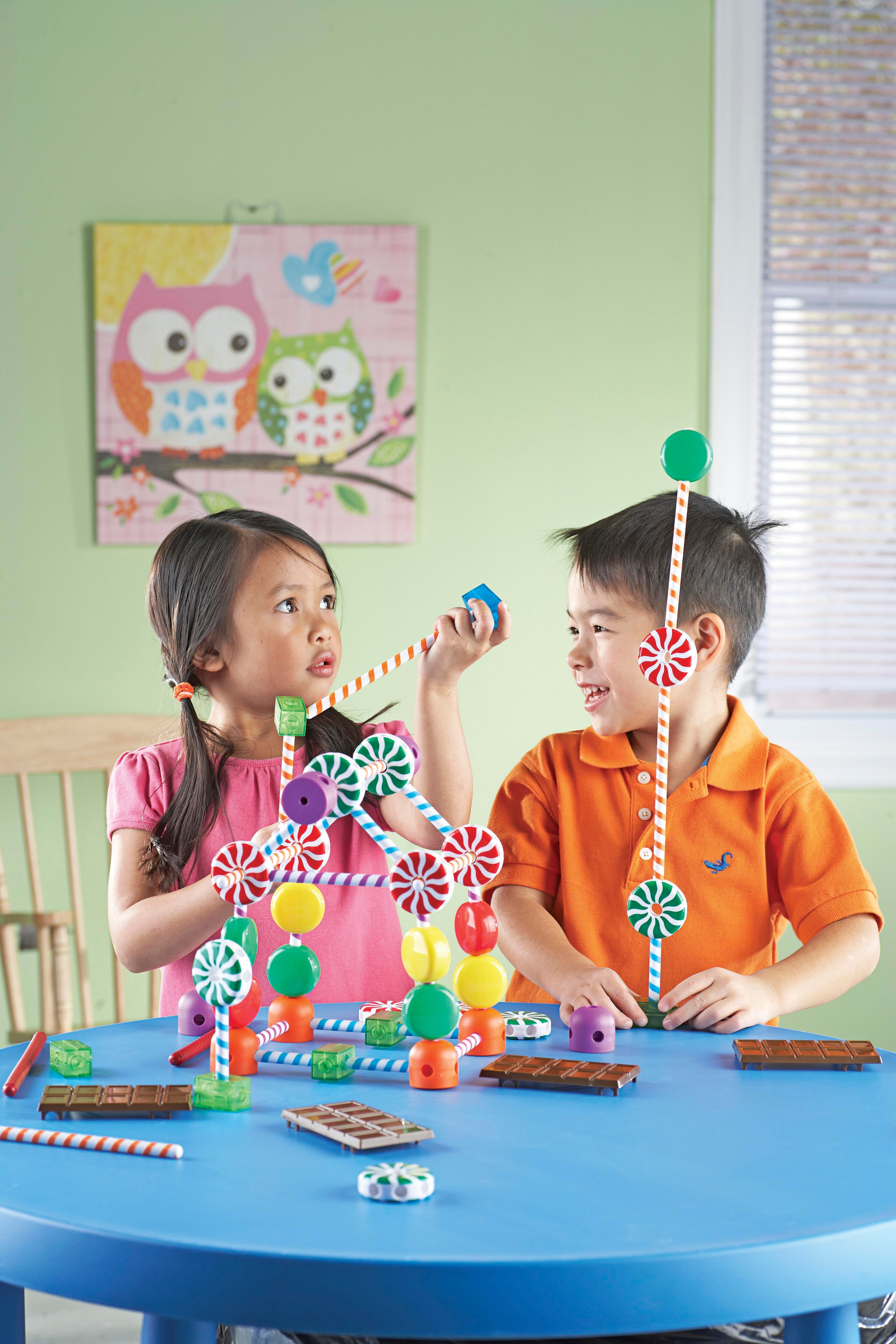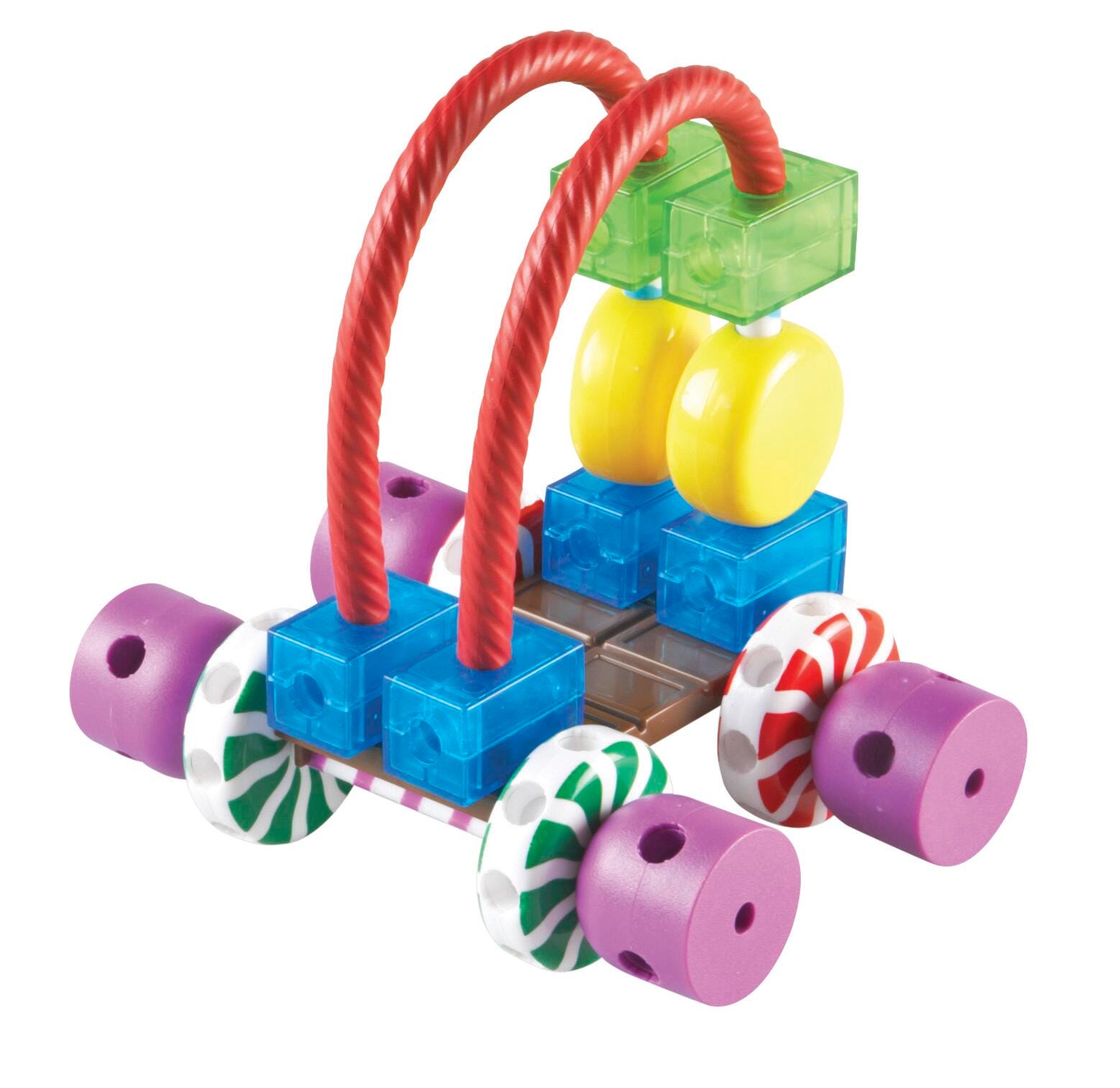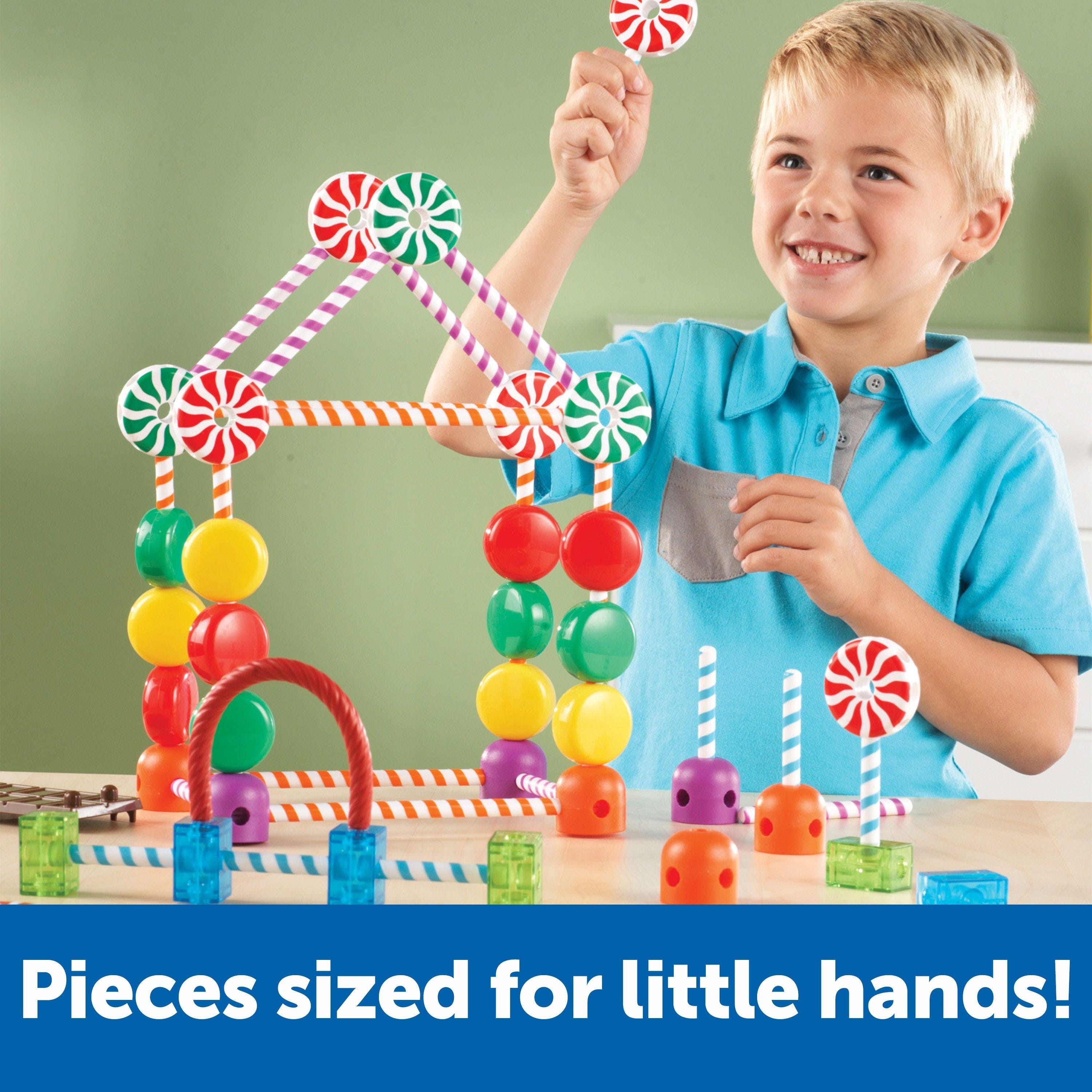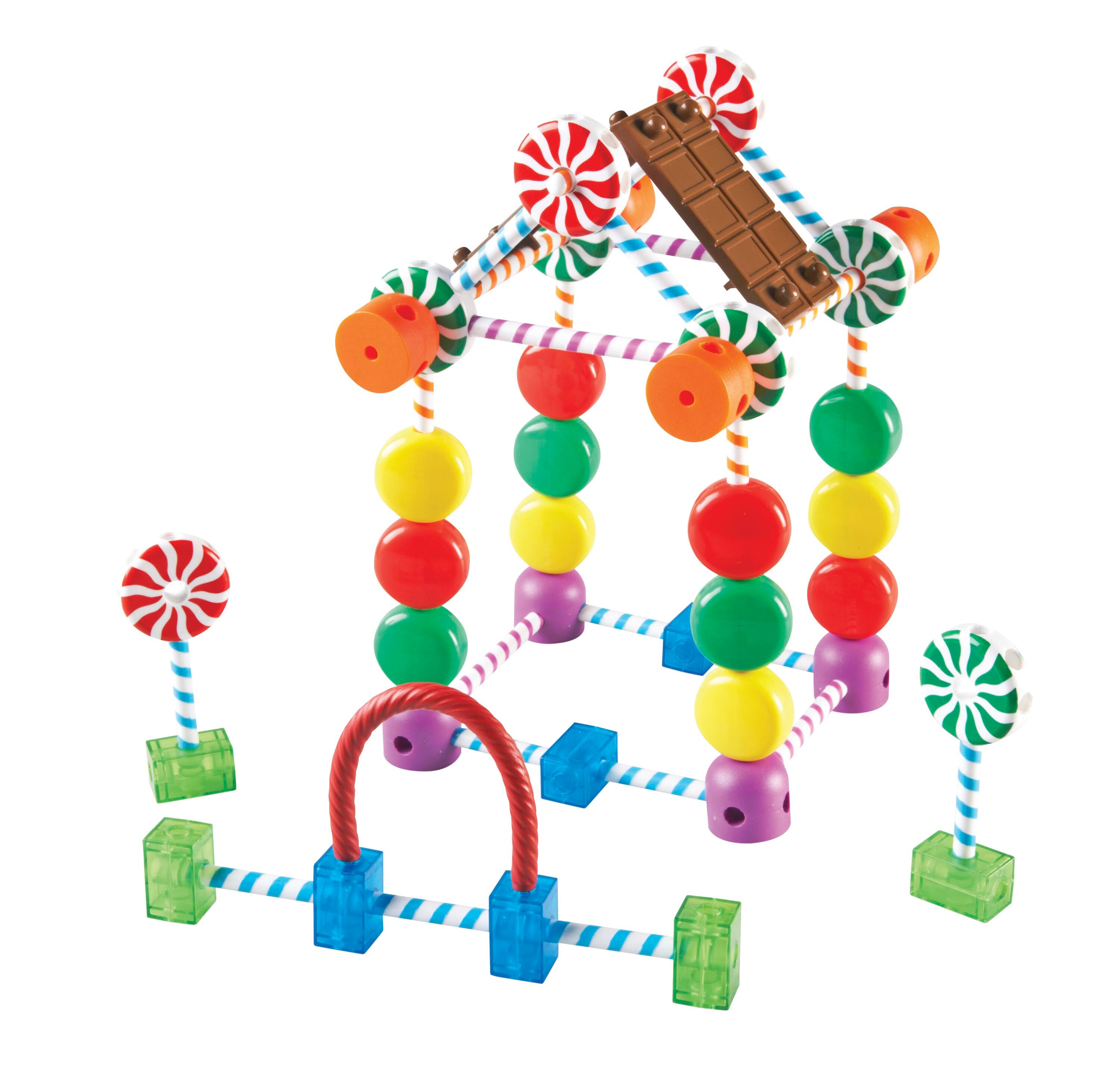 Learning Resources helps young engineers build unique candy-themed structures, all while honing their STEM and STEAM skills and encouraging creative play. The perfect solution to open-ended play, or use the included activity guide for a guided play experience with illustrated, step-by-step building directions. Largest piece measures a diameter of 7 x 1/2 inches. Features 92 Pieces.