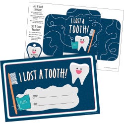 - 15 Recognition Certificates, 15 cut-and-tape tooth-holding envelopes, 15 Lost a Tooth Pendants, 32 Lost A Tooth Stickers/Self-Adhesive Badges