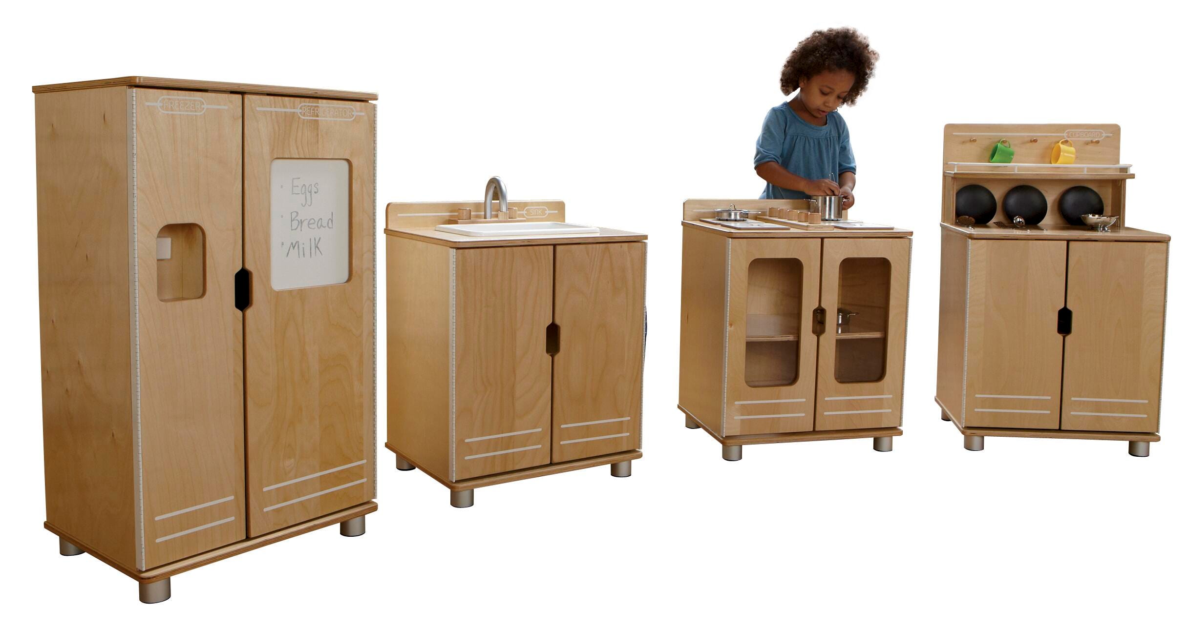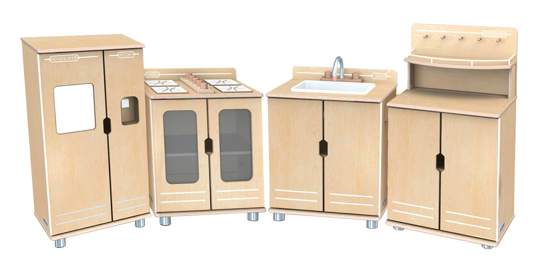 Jonti-Craft TrueModern Play Kitchen Set, Baltic Birch, Aluminum Feet, Set of 4