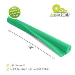 Smart-Fab Non-Woven Fabric Roll measuring 48 in x 120 ft in grass green is an innovative artistic and educational medium. It's bold, brilliant colors are in the material itself, so they won't fade and look great from either side. Soft and pliable yet strong and durable, smart-fab won't rip, fray or wear out, yet it's easy to cut, fold, twist, crimp, ruffle and glue. The cloth-like texture makes it pleasant to handle, yet firm enough to be used in 3-D creations and it is great for outdoor use. It is water and wear resistant but can be easily colored with paints, crayons, markers and all popular art media. Roll is also convenient to store, supplied in rolls that fit standard paper roll racks.Features