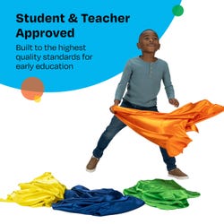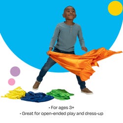 Childcraft® Rainbow Habutae Fabric is a versatile sensory tool that encourages imaginative play, movement, and creative expression. This lightweight, smooth fabric comes in the seven colors of the rainbow, making it perfect for dramatic play, music and movement activities, quiet spaces, and textural exploration. Whether the play fabric is used for dress-up, storytelling, or as a classroom decor accent, these colorful pieces enhance visual and tactile stimulation for young learners. Each piece measures 3-1/4 x 4-3/4 feet.Features