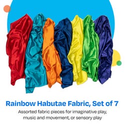 Inspire creativity and sensory exploration with this vibrant set of rainbow-colored Habutae fabric for pretend play in classrooms.