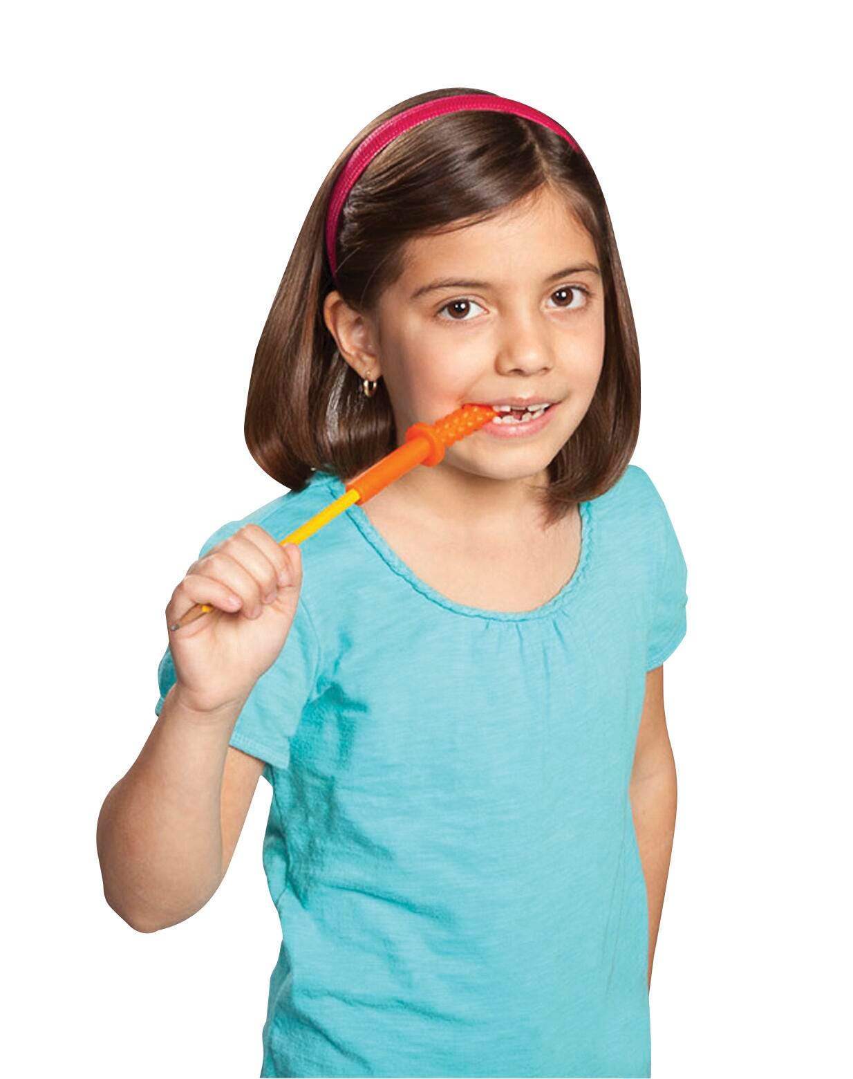 Plain Flavor Chew Stixx Junior offers great jaw rehabilitation assistance to stroke victims and people with head injuries and can also be used to defeat destructive oral motor grinding habits. Multiple textures simulate food textures. Device can easily slip into a child's pocket. Also fits on any number 2 pencil. The Junior is hollow, therefore it offers a crush and release type compression that is less likely to cause severe TMJ issues over time. BP and Phthalate free material and coloring. Used by speech, occupational, and physical therapists. Use of this product should be supervised by an adult at all times. Dishwasher safe.Features