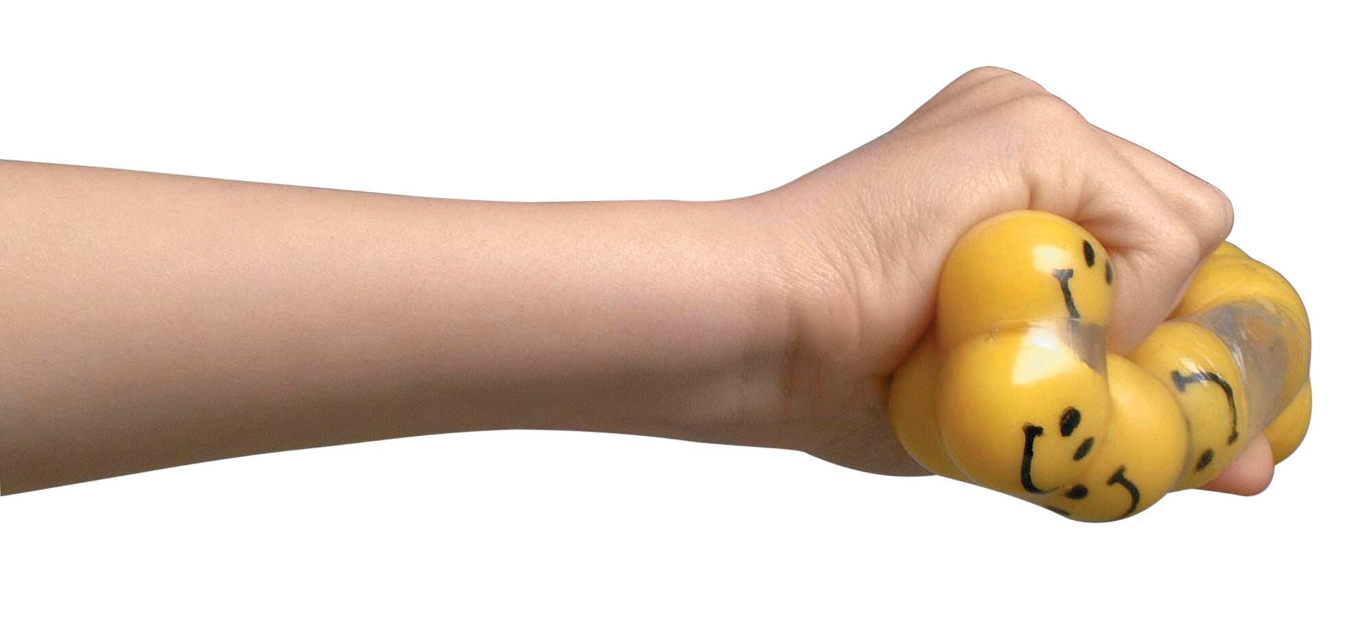 The ball is filled with smiley face balls, surrounded by gel. This is a popular choice for cause-and-effect activities. These non-toxic and latex-free, fidgets are great stress reducers and hand strengtheners. Not designed for heavy work as these fidgets may break. Each ball contains small parts warning and we recommend it for ages 5 and up. Colors vary.Features