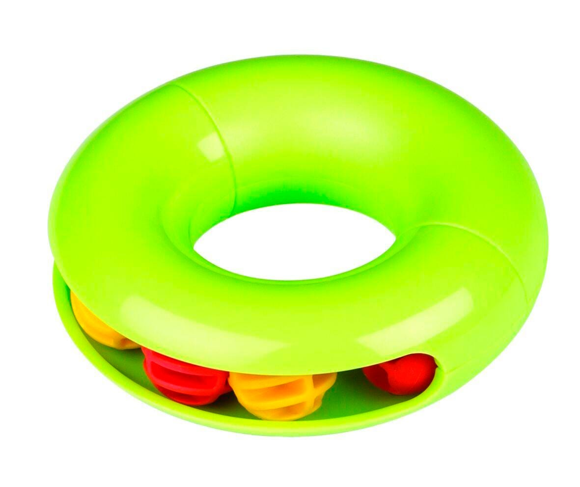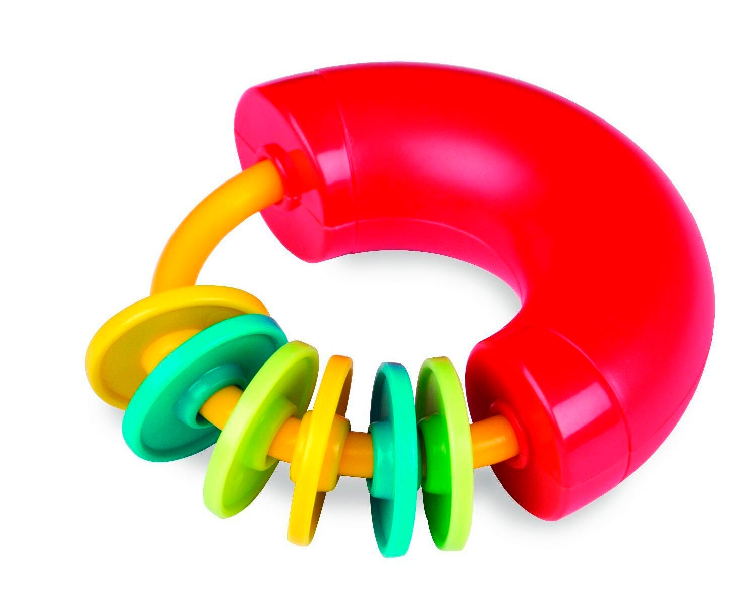 Let your babies shake and rattle to the rhythm of Toddler Ring Toys from Edushape. Durable, round, and textured O-shaped rings each contain different sound-making instruments on the inside (from rolling colored beads that can be watched to mini plastic cymbal shakers and actual bells) that are activated with a simple shake from your little one holding one of the rings. Each rounded ring is easy to grip (and measures approximately 3-1/2 x 1 x 3-1/2 inches)Sold as set of 4 in assorted colors, textures, and sounds. Designed for ages 3 months and up.Features