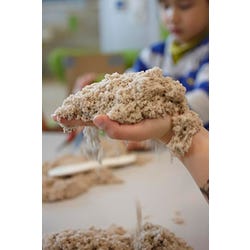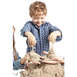 Kinetic indoor sand can be easily shaped into simple designs and gives you an unforgettable experience. It is a mixture of 98% pure sand and 2% of non-toxic polymer. It moves like dense fluid without making a mess. It sticks to itself, so cleanup is a breeze. Comes in a sealed container and is dust free. Not for use with water. Ages 3 and up.Features