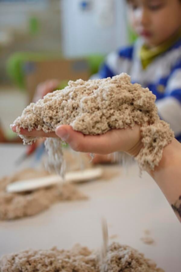 Playing with sand helps cognitive development, problem solving skills, fine motor control and sensory development. Kinetic sand oozes, moves and melts before your eyes like a slow-moving liquid, but leaves no residue behind.