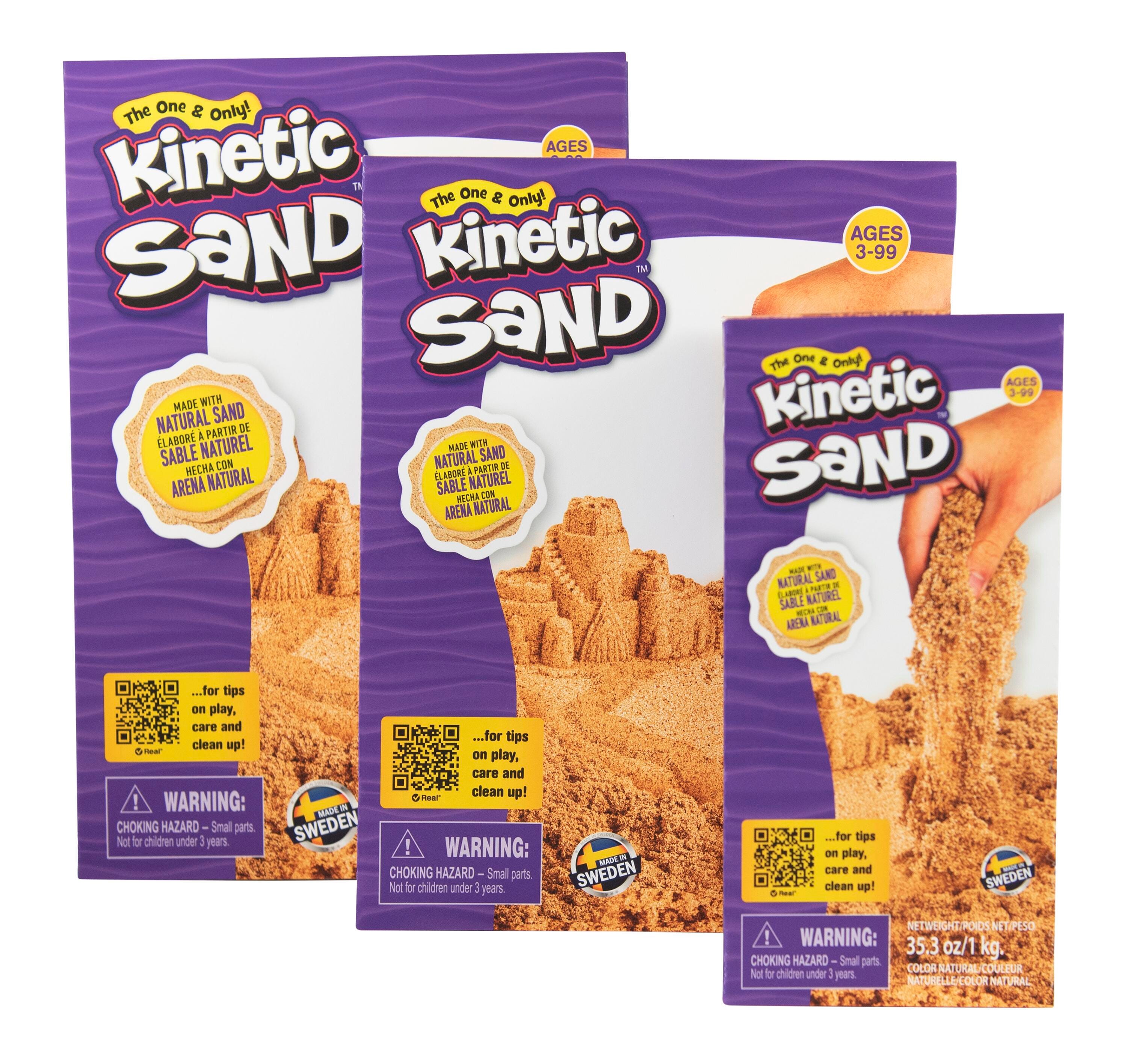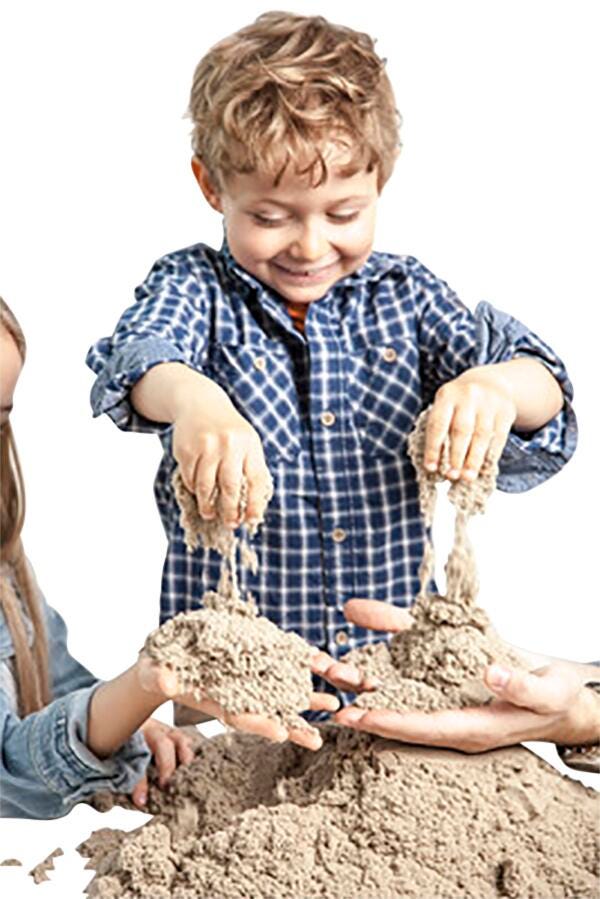 Kinetic indoor sand can be easily shaped into simple designs and gives you an unforgettable experience. It is a mixture of 98% pure sand and 2% of non-toxic polymer. It moves like dense fluid without making a mess. It sticks to itself, so cleanup is a breeze. Comes in a sealed container and is dust free. Not for use with water. Ages 3 and up.
