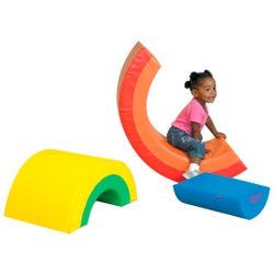 Brighten up any active play area with the Children's Factory Rainbow Arch Trio. This 3-piece soft play set features three lightweight, foam-filled arches in vibrant rainbow colors that spark creativity and encourage physical activity. Designed to support gross motor skill development, these versatile arches can be climbed over, crawled under, or used for imaginative play setups. Perfect for preschools, daycare centers, therapy rooms, and home learning environments, the Rainbow Arch Trio provides a safe and inviting way for young children to build strength, coordination, and confidence.Features
