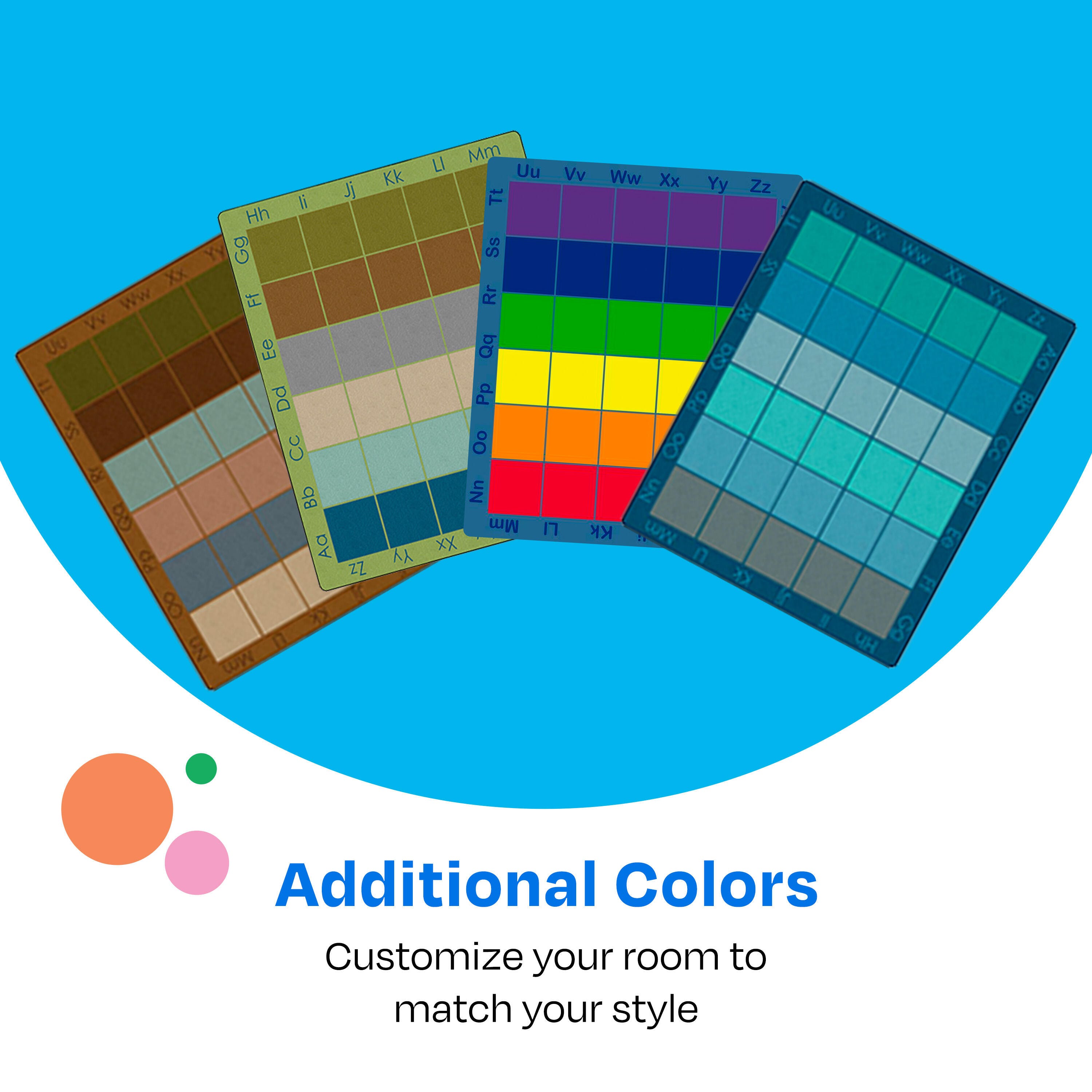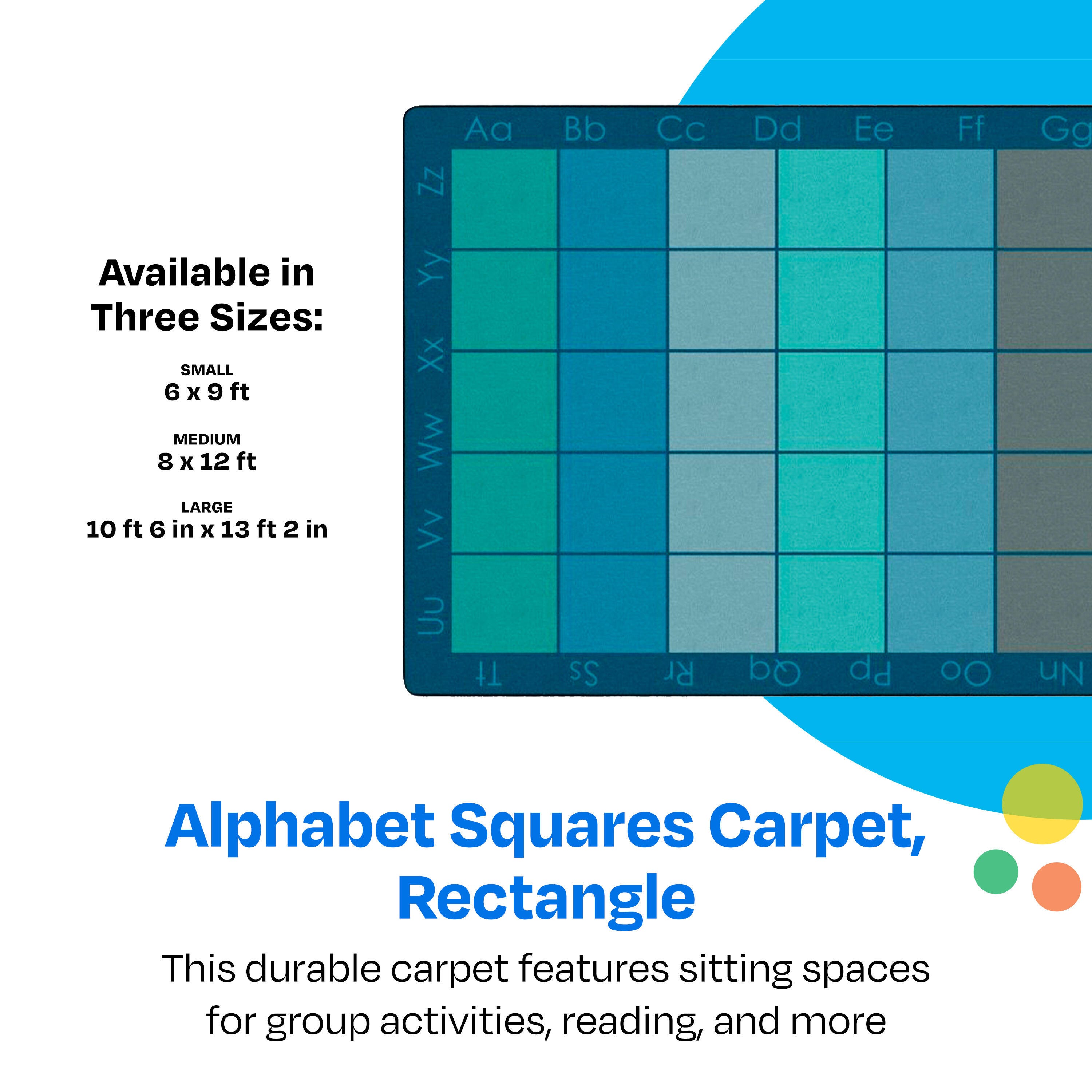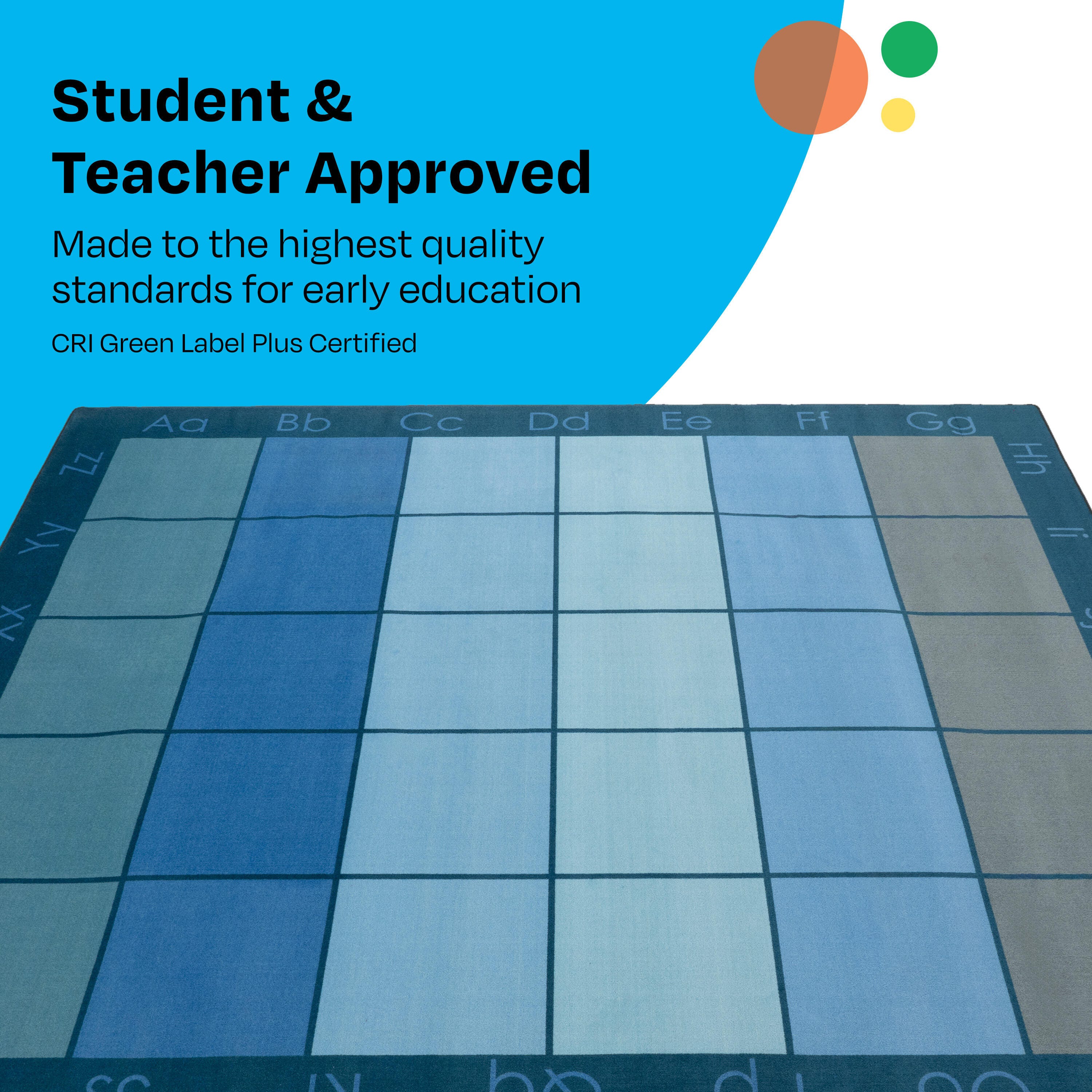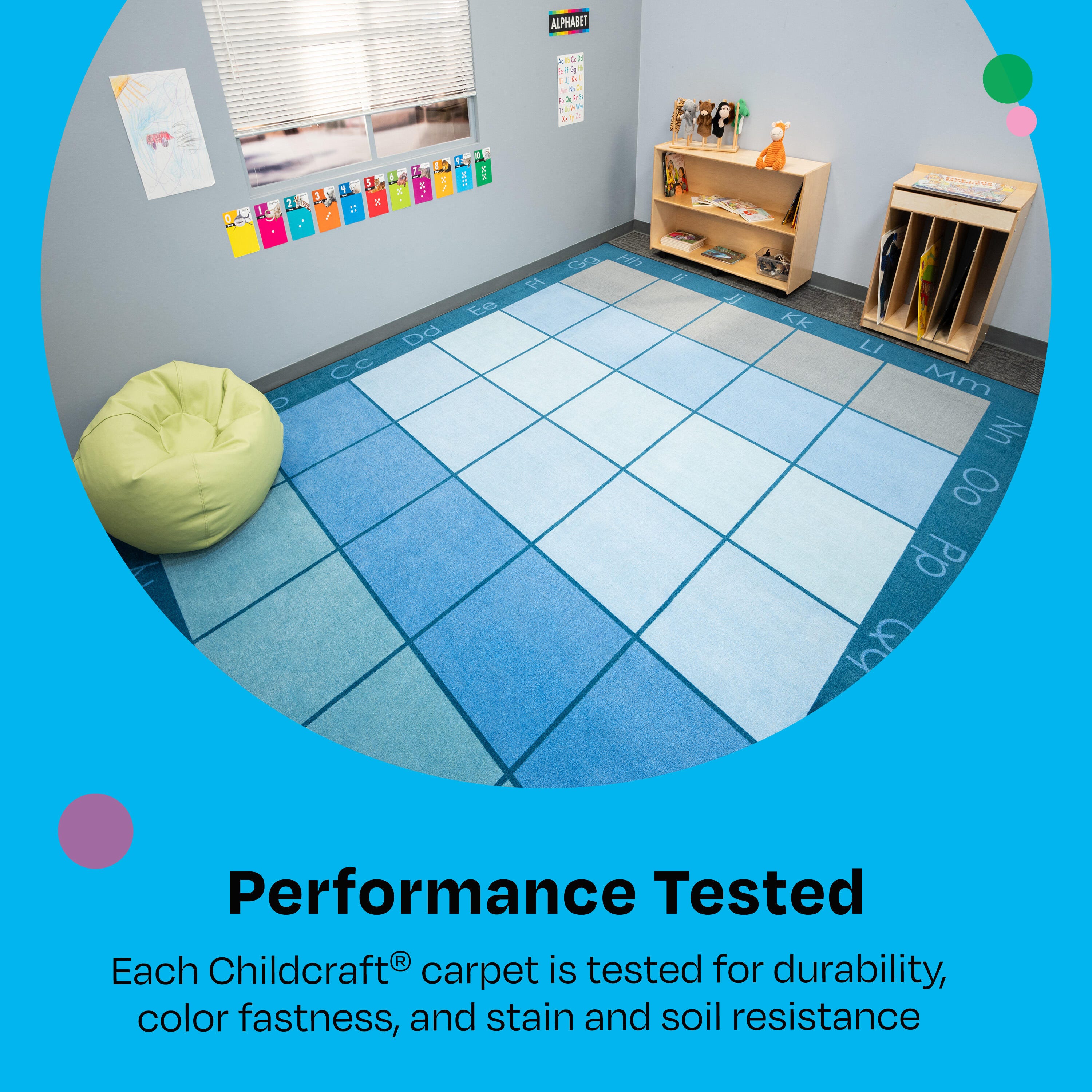 This Childcraft® Alphabet Squares Carpet comes in a rectangle shape and large size for students to sit, learn, and play. The spacious alphabet carpet for classrooms is made of high-quality materials to create a comfortable and durable space for playing, learning, and completing group activities. Our ABC carpet features colorful rows of seating squares surrounded by a literacy border that features upper and lowercase letters to encourage letter recognition and reading. A classroom carpet with squares is perfect for group activities, circle time, and more. Each Childcraft® carpet is performance tested for durability, color fastness, and stain and soil resistance for quality you can trust. The Green Label Plus Certification also helps ensure the best indoor quality for a safe and healthy environment all year long. Please Note: Childcraft® carpets are custom designs that are made to order and are therefore non-returnable.