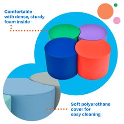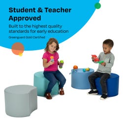 This set of Childcraft® Crescent Ottomans are durable, comfortable, colorful, and stylish, the perfect versatile seating solution for every classroom or childcare setting. The crescent seating cushions are made of dense, sturdy foam and a soft, durable polyurethane material. A durable exterior allows for easy cleaning; just wipe clean with a cloth and soapy water. The Greenguard Gold Certification ensures furniture items are low emitting and meet or exceed the industry standards for classroom use.Features