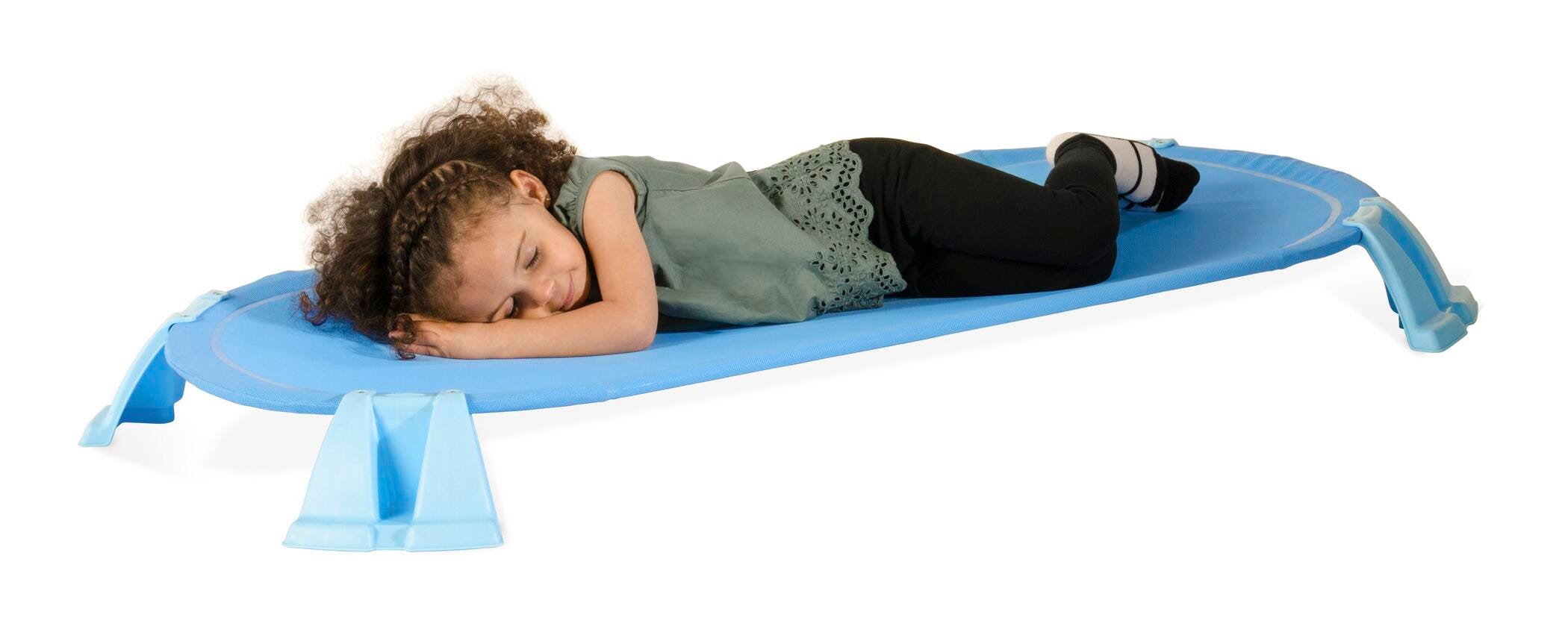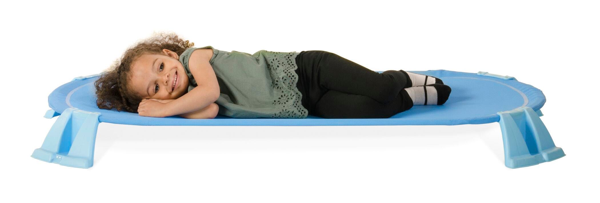No gaps, no frays, no wells! Podz™ Standard Cots are constructed of heat sealed mesh and have a solid, welded steel frame. State-of-the-art construction has no exposed hem which eliminates fraying. Steel frame with integrated feet provides the ultimate in durability. Patent pending design allows cot to flex making naptime more comfortable. Ergonomic shape fits children’s bodies better and provides more usable space. Unique foot design has no channels or wells to collect dirt and germs. Podz™ eliminates those tough-to-clean areas. Fabric can be cleaned again and again. Sold as a pack of 4.Features