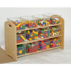 Complete your space with a stylish and practical storage rack for classrooms, childcare centers, and playrooms. Includes 12 clear trays.