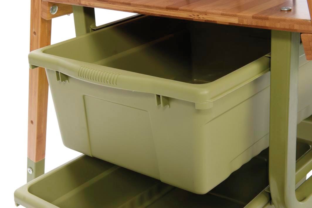 Bamboo was chosen for its sustainability, being one of the fastest-growing plants on Earth. The double-sided, magnetic dry-erase whiteboard includes a bamboo middle shelf, an adjustable book ledge, and four large open tubs that are made with 25% recycled content. Features four 3-inch locking casters. The whiteboard measures 29 W x 29 H inches; the frame measures 30-1/2 x 28-1/2 x 59 Inches