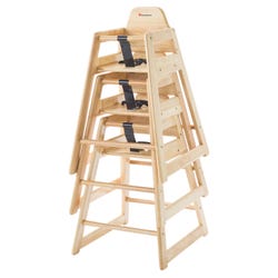 Durable solid-hardwood construction. Rounded edges for safety and finished appearance. Wide base for added stablilty. Easy-to-clean, adjustable harness for added security. Replaceable passive, crotch restraint prevents slip through. Stackable up to four high to reduce storage space. Meets or exceeds the ASTM F404 safety standard.Features