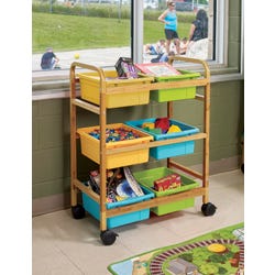 Copernicus Small Bamboo Book Browser Cart with Vibrant Cool Tub Combo, 28 x 16 x 37-1/2 Inches