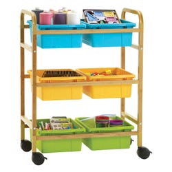 Copernicus bamboo carts are a more sustainable choice than metal models because they have a smaller carbon footprint. Bamboo is a renewable resource that grows quickly and absorbs carbon, unlike steel which produces carbon. For every bamboo product purchased, Copernicus will make a donation to conserve natural panda habitat through the World Wildlife Fund. This cart has a natural aesthetic better suited for neutral and early childhood environments. It can be used as a mobile in-class library where students can help themselves to a book or for maker space materials and tools. Available in four color combinations.Features