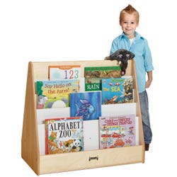 Jonti-Craft Birch One-Sided Book Stand measuring 30 W x 16-1/2 D x 27-1/2 H inches has four shelves and is made from plywood. Provides a helpful organizational unit for your classroom, child care center, or home.