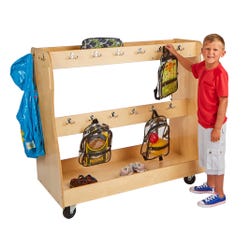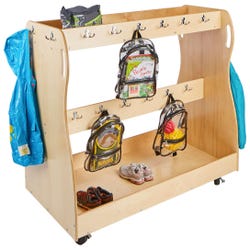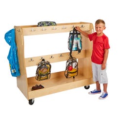 Keep backpacks, coats, and gear neatly organized with this mobile storage cart for classrooms.