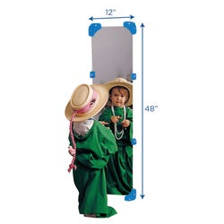 Add a new dimension to dramatic and creative play! This shatter-resistant acrylic wall mirror fastens easily to wall creating an irresistible focal point for play. Attach mirror to the wall with our molded polyethylene corners and sides. Corners and sides make installation simple and hold mirror securely to wall. Mounting hardware not included. Measures 48 L x 12 W inches.Features