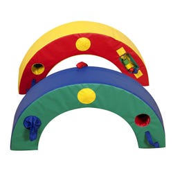 - Pockets, squeakers and bells add interest as these two colorful, easy to clean pieces are combined to form a ring or separated to form arches or open play area interest