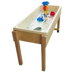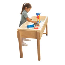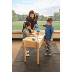 The Childcraft® Sand and Water Table with Cover provides a fun and engaging way for children to explore science, fine motor skills, and tactile learning. This sturdy sensory table features a 6-inch-deep tub, a quick-empty bottom drain, and two smooth-rolling casters for easy mobility. Built with dado construction and a four-coat UV acrylic finish, this durable sensory table withstands daily use in classrooms, childcare centers, and home learning spaces. A removable liner and fitted cover help keep materials contained and the play table clean when not in use. Measures 45-7/8 W x 17-3/4 D x 24-3/4 H inches.Features