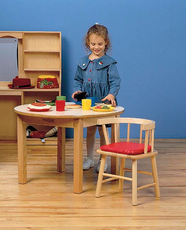 A durable, economical children's hardwood chair with strong bentwood back and 12-inch seat height. Unlike flat ladder-back chairs, the curved back of our chair provides important side support to help keep young children seated safely and comfortably.