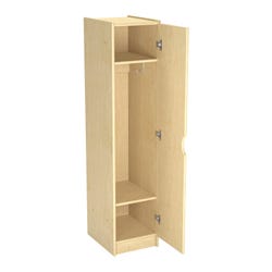 Childcraft® Modular Coat Locker offers a compact and easy way to keep student belongings organized and out of sight. This wooden locker includes aluminum coat hooks and two cubbies (one above and one below), perfect for holding backpacks, shoes, lunches, and other school supplies. Designed for versatility, two or more of these classroom lockers can be bolted together to fit the specific needs of your space. The narrow footprint makes them ideal for fitting multiple units along walls while keeping items accessible to young learners. The slim locker measures 11-1/4 W x 14-1/4 D x 50 H inches. Comes fully assembled. For safety, units must be wall-mounted; not recommended as a room divider.Features