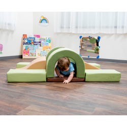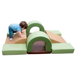 The Cozy Woodland Hideout by Children's Factory is perfect for babies starting to crawl! This soft and safe environment is fun to explore and helps little ones build muscle control. The 10-piece set comes in calming woodland colors and includes ramps, arches, and steps that are low enough to keep young children safe as they climb over and through.Features