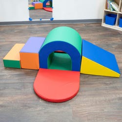 Six specially-shaped soft play forms create a motor-perceptual playland perfect for early learning childhood spaces like playrooms and care centers. Everyone will find something enjoyable with so many options! From ramps to inclines, young ones will have fun developing key balance and gross motor skills as they traverse the colorful foam shapes. Perfect for ages 8 months to 3 years. Measures 71 L x 70 W x 20 H inches.Features