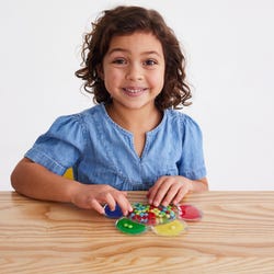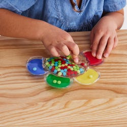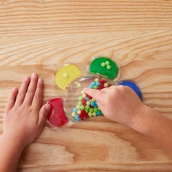 Use motor-planning, tactile discrimination, and small muscles to move the beads through the gel into their color-coded chamber. Simple to play finger strengthener improves handwriting results and dressing skills. It's easy to wash, easy to transport, and easy to use. The perfect fidget for on-the-go sensory processing support!Features