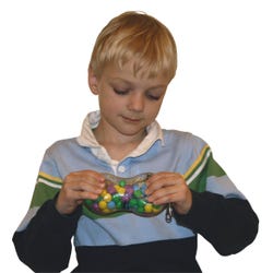 It takes two hands to fidget with a Twidget! Comes with a short keychain snap for attaching to a backpack or keychain. Provides soothing tactile stimulation and intriguing visual input, captivating moving texture, and a slight sound which encourages rhythmicity. Large enough for a two-handed texture experience. Measures approximately 6-5/16 x 2-5/8 x 2-5/8 inches.Features