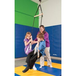 Southpaw Interaction Dual Swing includes unique design encourages a more normal shoulder and upper extremity position. It encourages interactions as it provides stimulation and the shared exercise encourages longer involvement in therapeutic activity. It is active play by two clients offers both rotational and orbital stimulation and demands postural adjustments.