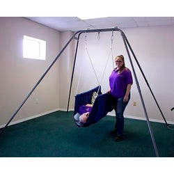 The Soft Taco is an easy and fun way to get relaxed. Get the full therapeutic effect by having the child or adult lie face up or down, and slowly swinging. Made of durable rip-stop material with soft, cotton-like feel. Adult seat stretches out to 72 inches in length and rolls up for easy transportation. Material can be easily removed for washing. Seat utilizes the user's own weight for calming, whole-body pressure. Weight capacity: 350 pounds. Swing only, Frame not included.