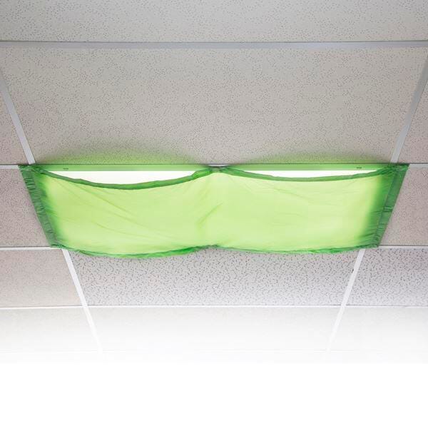 Cozy Shades filter out annoying hues in classrooms or cafeterias, softening the light for a cozier space. Designed for standard fluorescent fixtures used in schools. Includes set of 4 flame-retardant 54 x 24 inch (137.2 x 61cm) panels. Six magnets allow for single or double swags on each fixture.Features