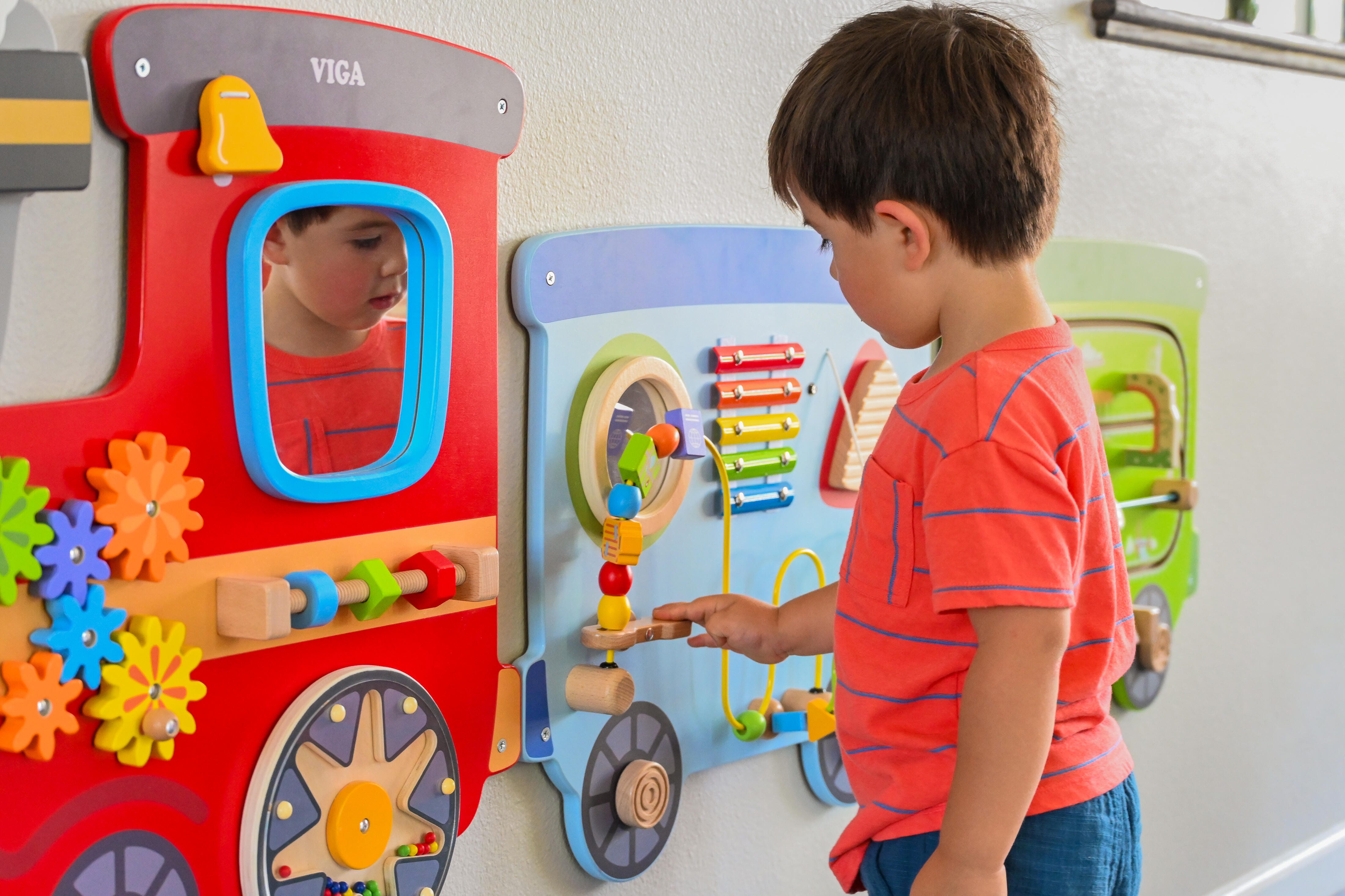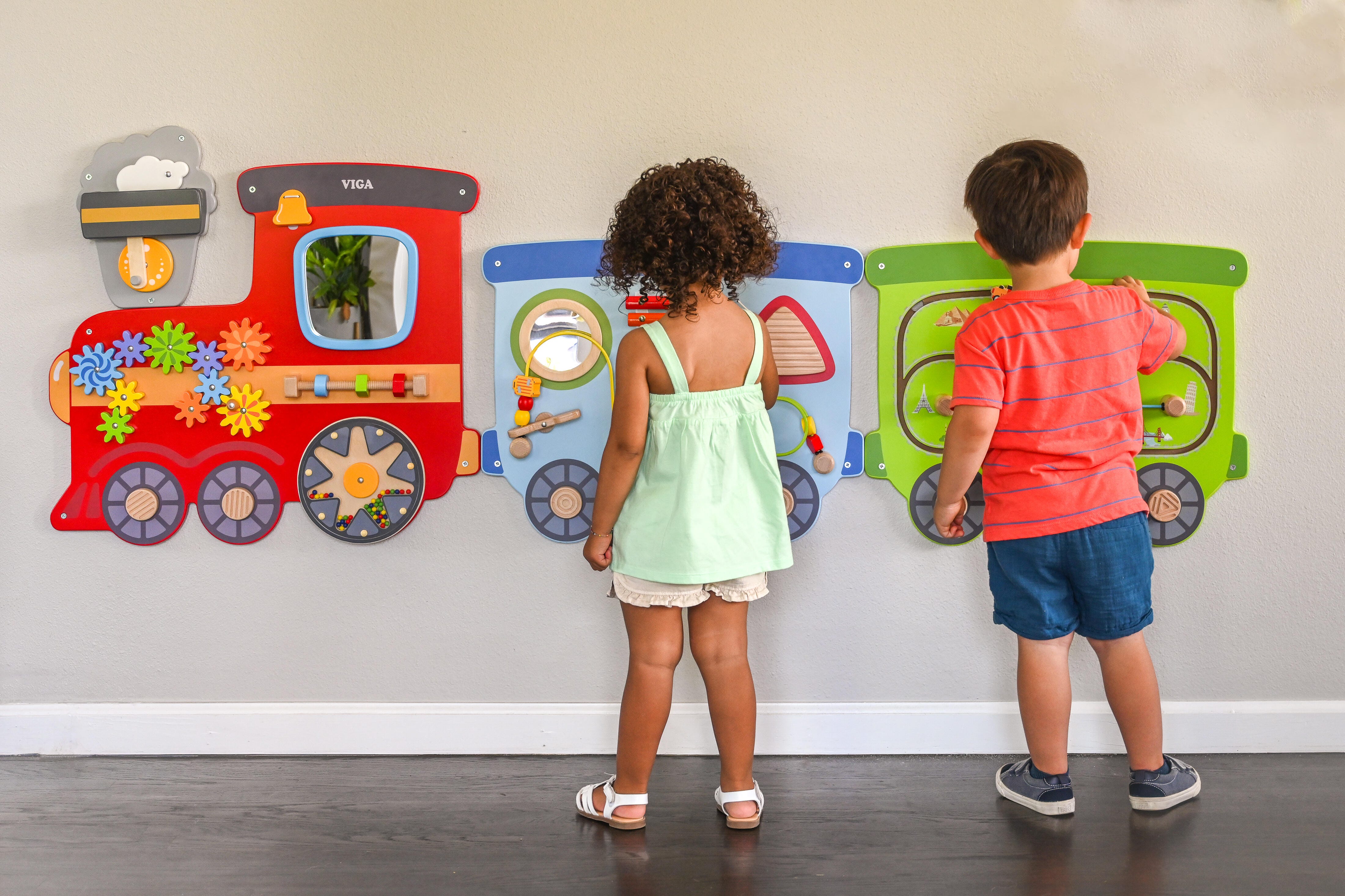 All aboard a more interactive play experience with these train activity wall panels!