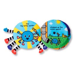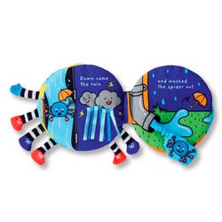 Kids will delight in turning the soft, textured pages of this cloth activity book to follow an adorable little spider on its adventures up and down the water spout! Interactive details on each page let kids of all ages grasp, crinkly, stretch, and play peek-a-boo as the classic tale unfolds. The eight page book is durably constructed to last through story time, playtime, and the washing machine, too.