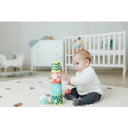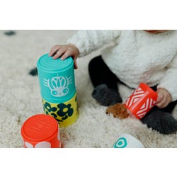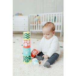 These fun stackable cups promote visual stimulation, attention, and visual perception through high-contrast colors designed for developing eyes. They also help to exercise eye-hand coordination and logical reasoning through fun stacking and sorting self-play. And, of course, through knocking them down once playtime is done. The Miniland Feel to Learn Collection is created to meet the key developmental milestones from infant to 3 years through play and self-discovery. These stacking cups are made for young ones from 9 months to 2 years.