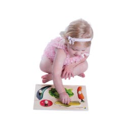 Bring the garden to your playroom with lifelike screen-printed vegetables on each puzzle piece. Each piece is affixed with an easy-to-grip knob for young hands developing fine motor skills. Perfect for ages two and older.