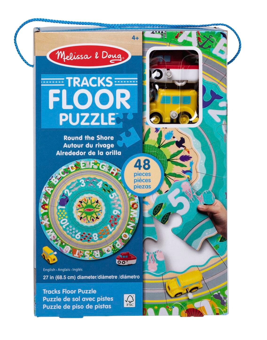 Melissa & Doug Round the Shore Tracks Jigsaw Floor Puzzle and Wind-Up Vehicles, 48 Pieces