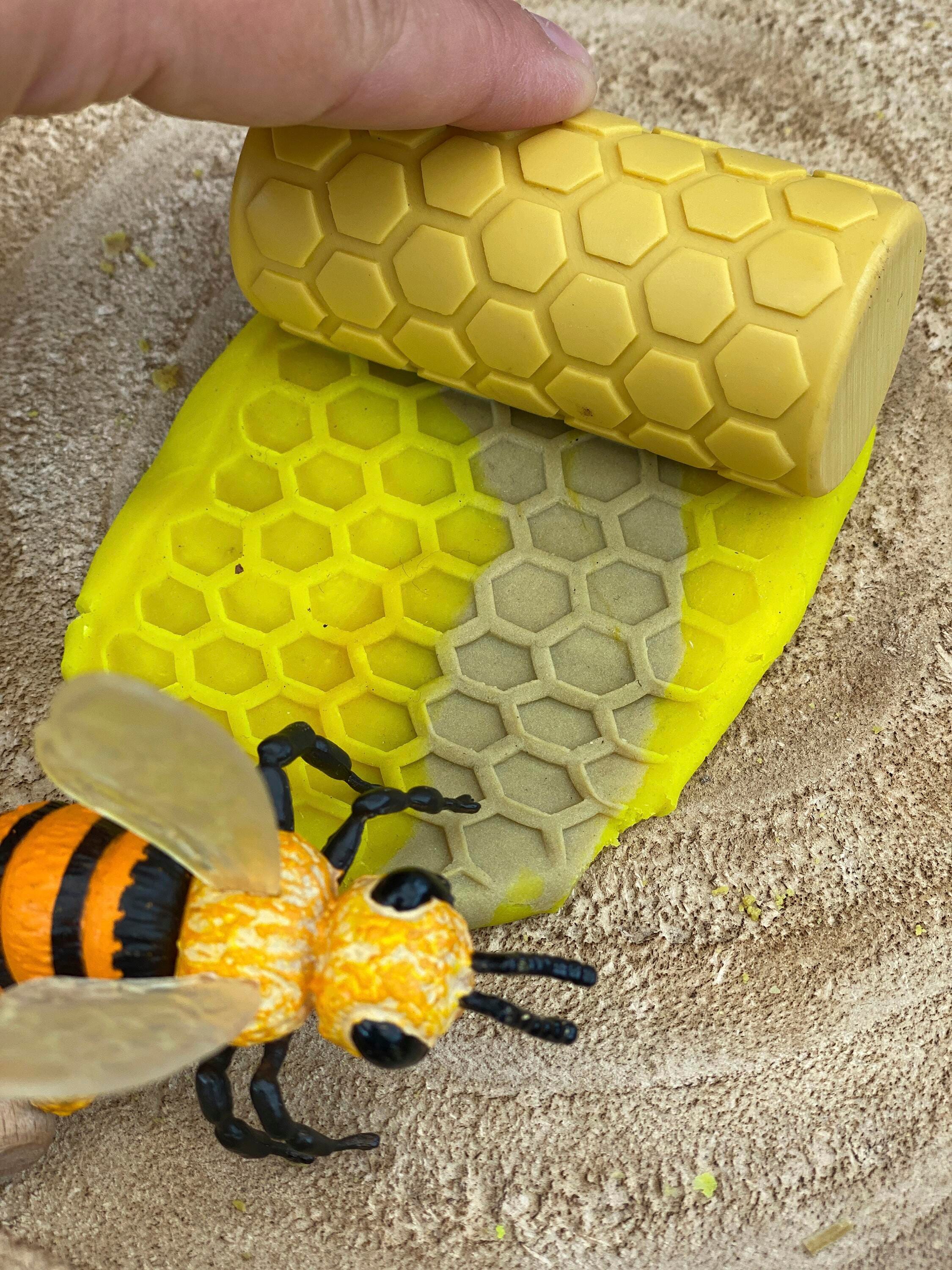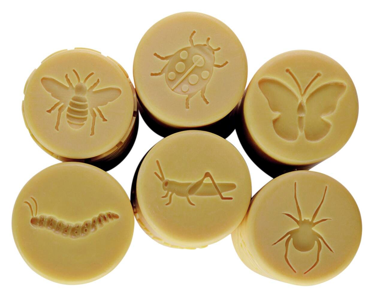 Inspire tactile development and STEM-inspired learning with bug stamps and their corresponding roller habitats. These rollers offer a creative way for children to explore the natural world through tactile play. Roll into play dough or clay and stamp with the bugs to create hands-on art projects that mimic natural habitats! Count the bees on the honeycomb, match the ladybugs to flowers, and tell stories of what is happening close by when you look carefully. Children can experiment using different amounts of pressure and rolling in different ways. Each roller measures approximately 3 L x 1-1/4 D inches. Perfect for children ages two and older.