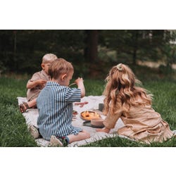 Sustainable tableware set from the Dinnertime range of Dantoy's tiny product line. The extensive set contains multi-functional pieces providing many options for setting the table for any meal. The breakfast and lunch set are appropriate from an early age, as soon as food is introduced. The set’s pieces have an ergonomic shape and are the perfect size for children learning to eat and drink by themselves. The set helps strengthen children’s fine motor skills development and hand-eye coordination. The long-lasting tableware set can accompany children from the very first meal and adapt to their growing proficiency and motor skills development. Simply remove the lid from the sippy cup and introduce the knife. The tiny breakfast and lunch set from Dantoy is made from recyclable bioplastics. Recommended from 0+ months.Features