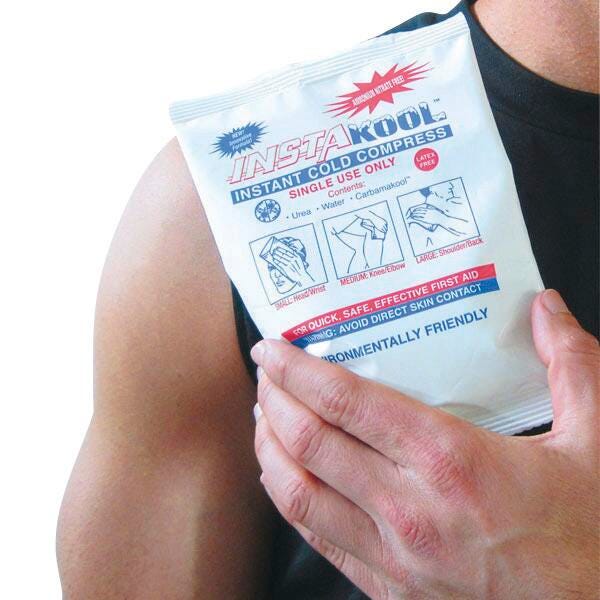Insta-Kool instant cold pack delivers immediate cold therapy for first aid, providing comfort and reducing swelling after an injury. This revolutionary formula is the first instant cold pack with National Security in mind. Ammonium Nitrate-Free; this innovative formula rivals the temperature ranges of previous cold packs. Exceeds ANSI standards. Latex-free. Measures 5 x 6 inches. Sold individually.