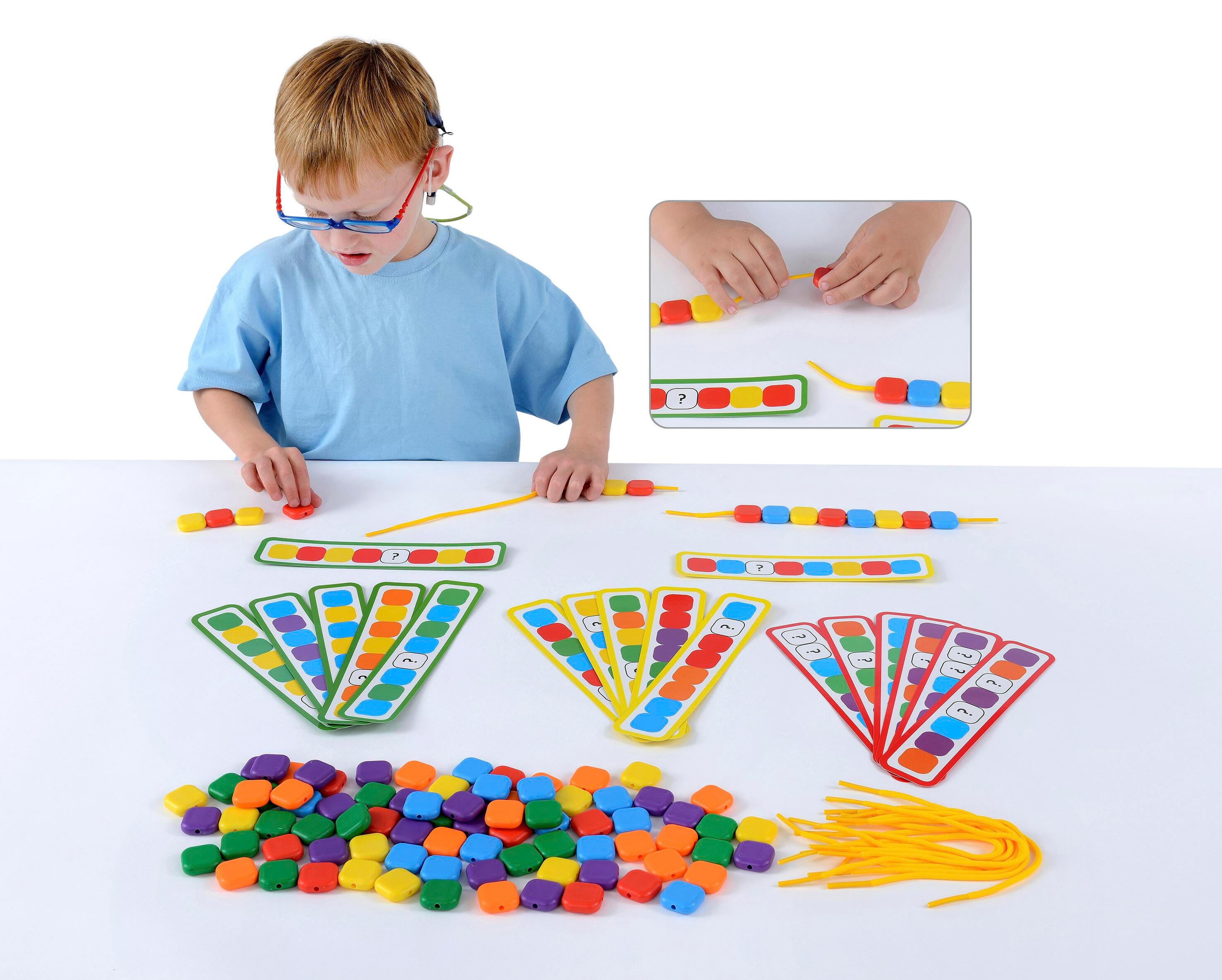 Set is ideal for developing fine motor skills, while teaching patterns and sequencing skills. Ages 3 and up.