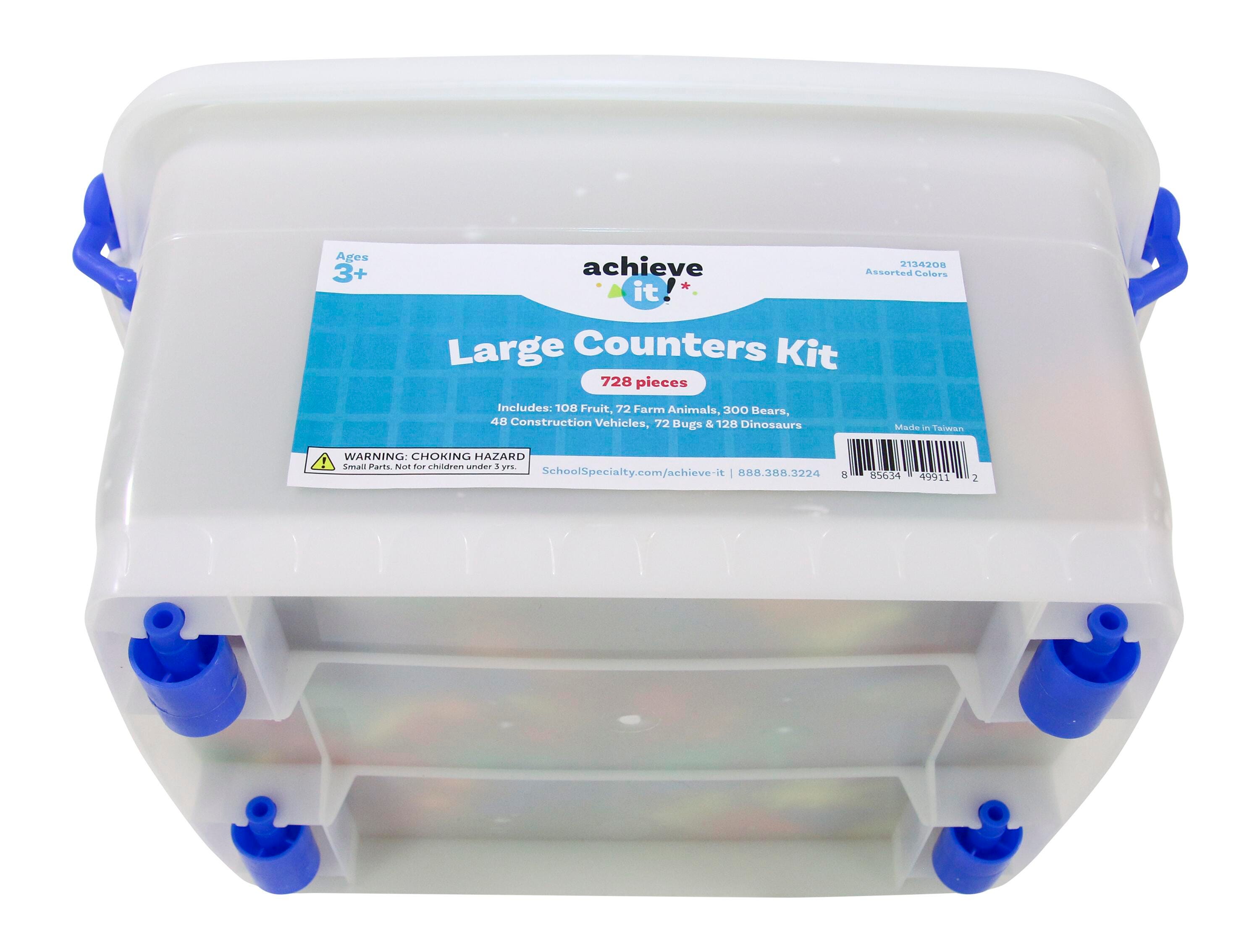 Large variety of counters in assorted colors and shapers. Comes in a convenient storage tote. Perfect for ages 3 and up..Features