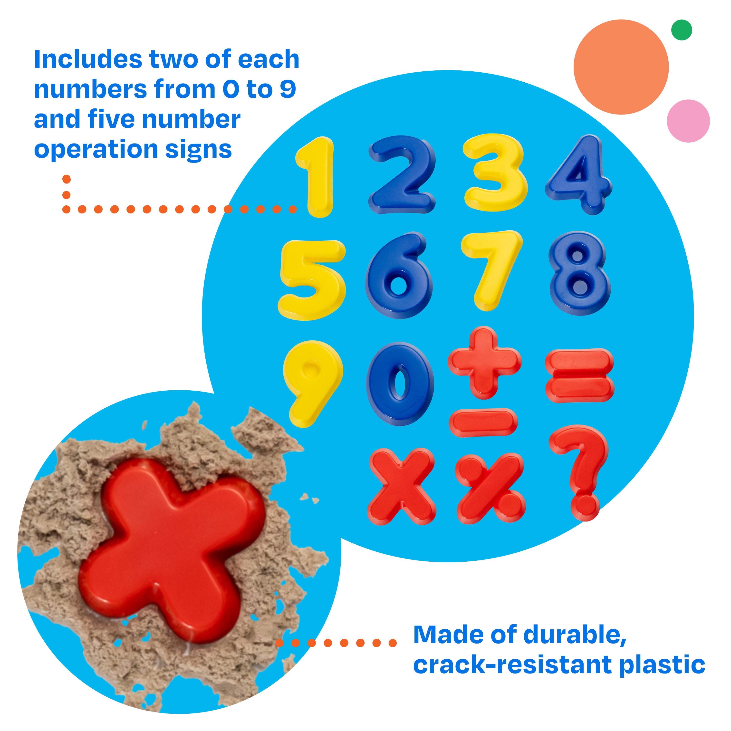 The Childcraft® Numbers and Operation Sand Molds set brings early math concepts to life through tactile, interactive play. Designed for young learners, this play set includes two of each number from 0 to 9, plus five essential math operation signs: addition, subtraction, multiplication, division, and equals. Made of durable, crack-resistant plastic, these molds create clear, defined impressions in sand or other sensory materials, making math more engaging and fun. Ideal for use in sand tables, sensory bins, or outdoor play areas, this set helps strengthen fine motor skills, hand-eye coordination, and early numeracy. Suitable for ages 3 and up.Features